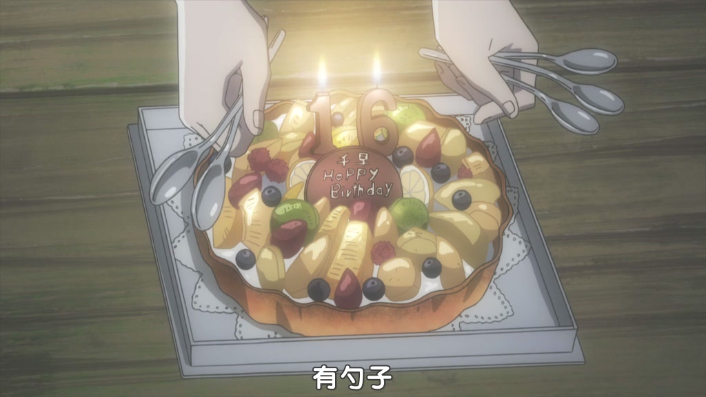 目前的進度就是千早順利地成立了歌留多部,大家給她過了16歲的生日。最後新也來了短信,祝賀生日快樂……最後那一幕真心戳人淚點。